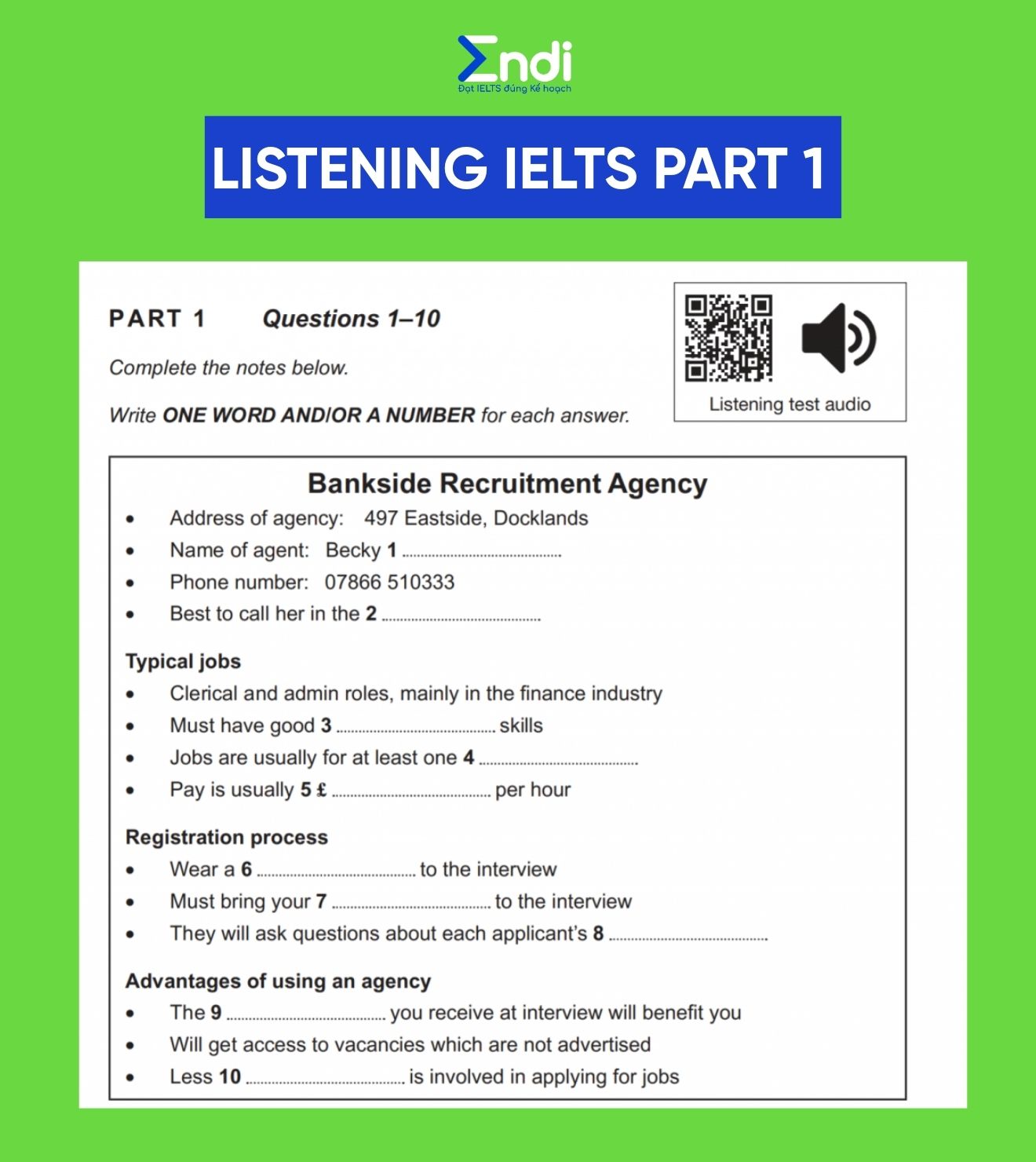 Listening IELTS Part 1