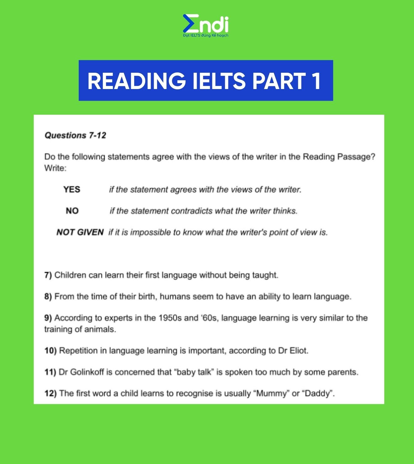Nếu bạn gặp khó khăn khi bắt đầu, có thể học qua tài liệu IELTS cho người mới bắt đầu hoặc các khóa học IELTS có giáo viên luôn phản hồi 24/7 và sửa bài chi tiết tại ENDI.