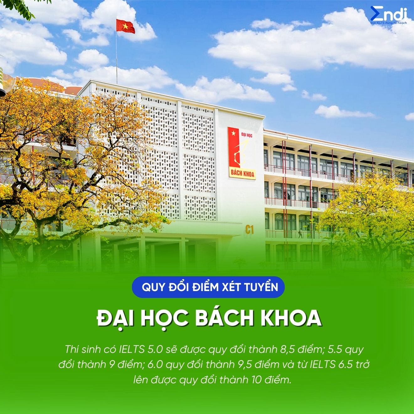 | ĐH Bách Khoa HN | IELTS 5.0+ | Quy đổi điểm tiếng Anh cho tổ hợp xét tuyển, điểm thưởng vào tổng điểm xét tuyển tư duy |